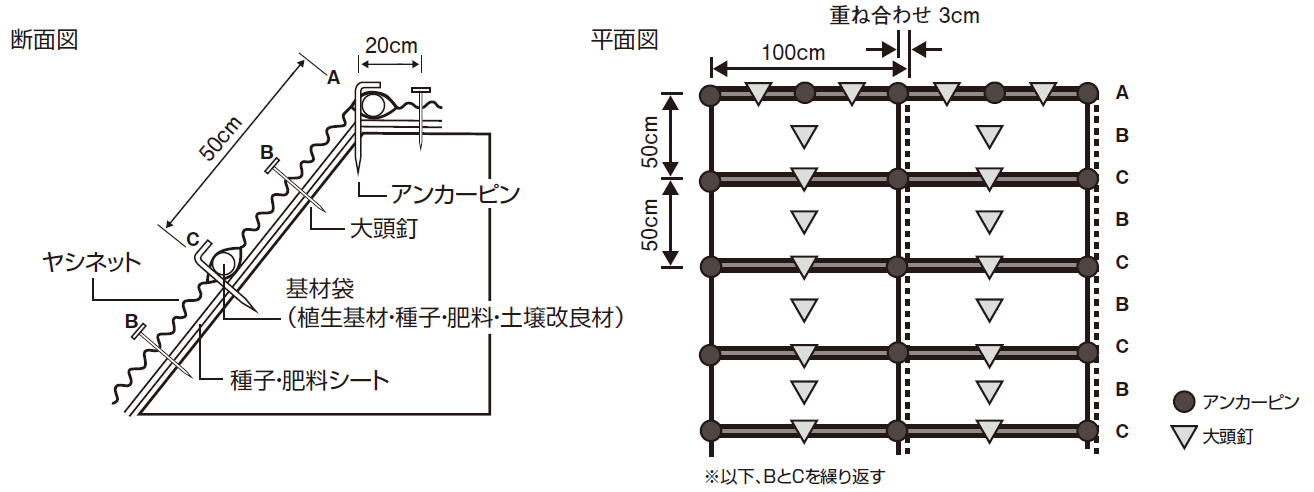 ※張り付けは法面の上部から下部へ向かって行ってください。