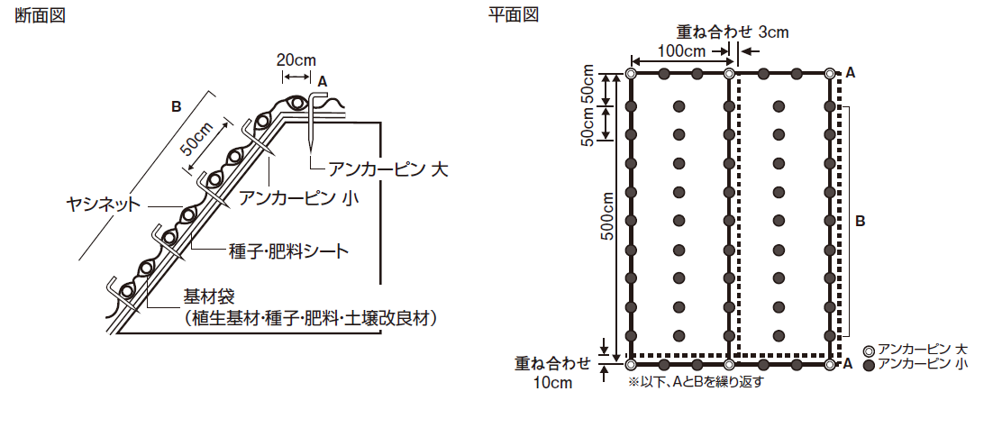 ※張り付けは法面の上部から下部へ向かって行ってください。