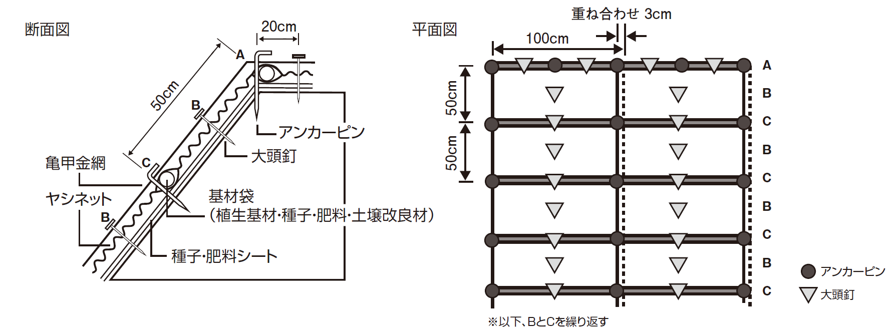 ※張り付けは法面の上部から下部へ向かって行ってください。