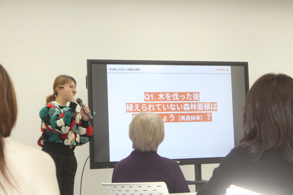 セミナーでは、林業業界を取り巻く現状・森林保全の重要性・「戻り苗プロジェクト」の取り組みの社会的価値などについて学びました。